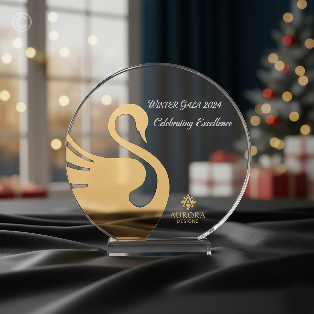 Graceful Achievement: Acrylic Swan Trophy with Golden Finish
