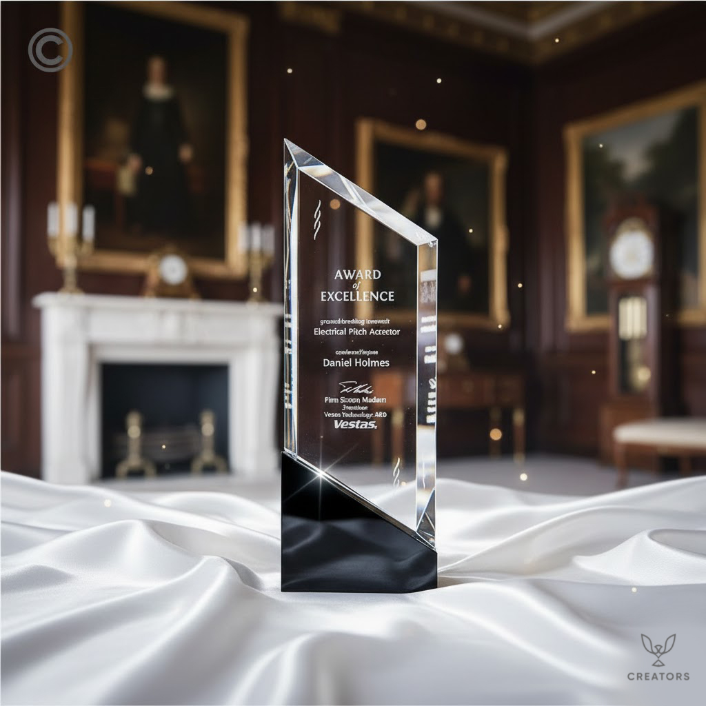 Personalized Crystal Award of Excellence celebrates professional achievement, and its design makes it the perfect centerpiece for any recognition ceremony.