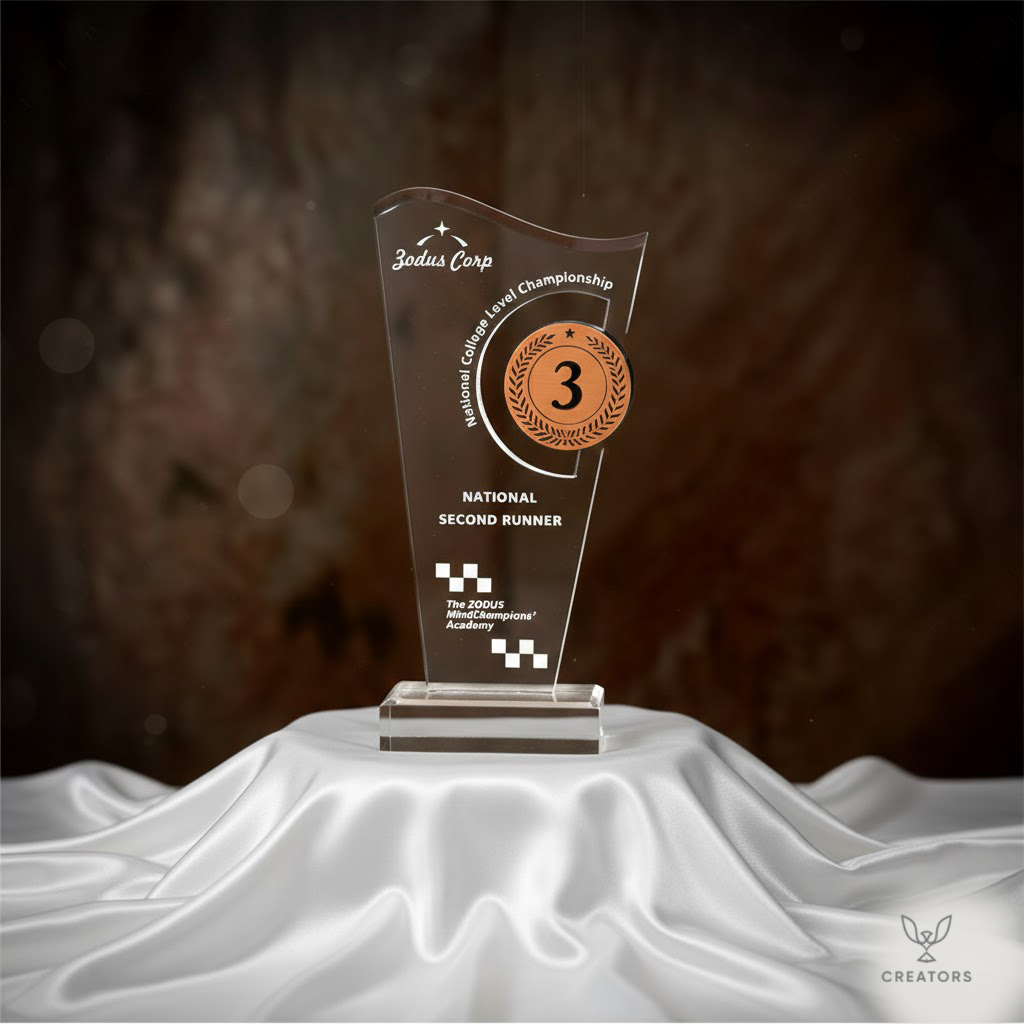 Whether presented at corporate events, sports competitions, academic ceremonies, or any special occasion, this clear trophy with a bronze crest and beveling holds a special place as a symbol of honor and accomplishment. It embodies the recipient’s remarkable journey and serves as a lasting testament to their exceptional contributions.