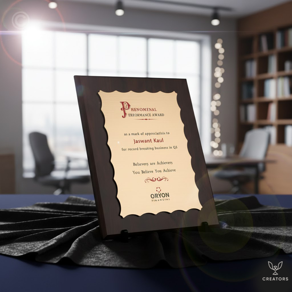 Craft the plaque from a solid piece of high-quality natural wood, such as oak, walnut, or cherry. The warm tones and unique wood grains evoke a sense of nature and authenticity.